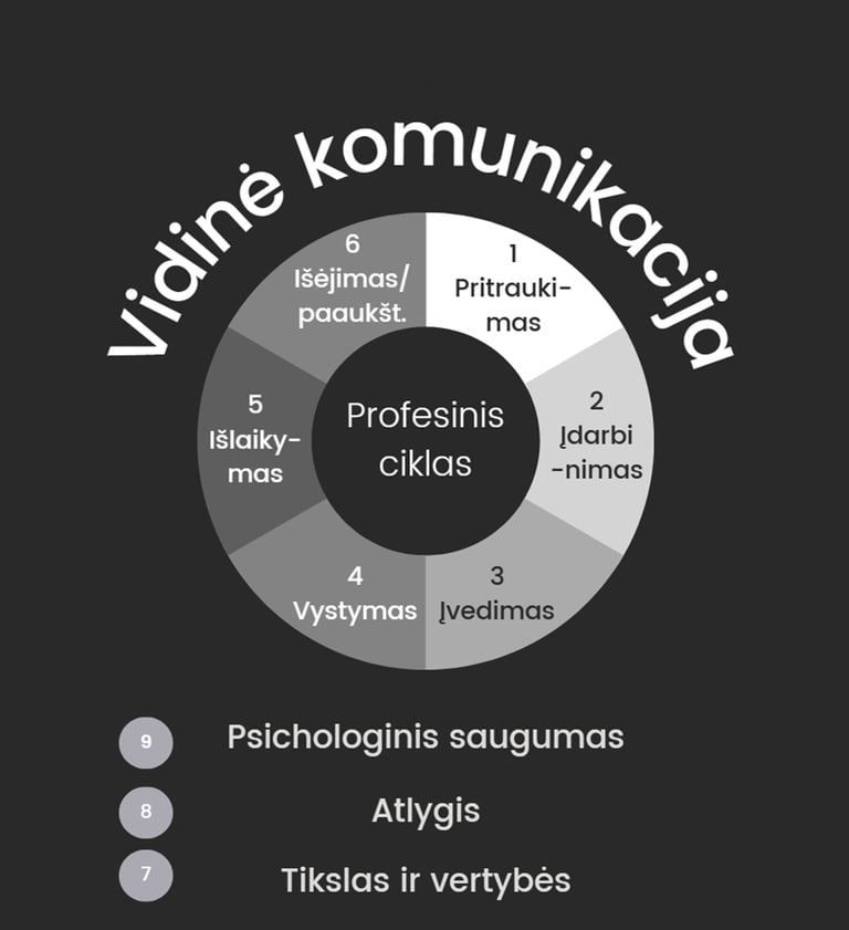 pristatyti organizacijoje veikiančio žmogaus profesinį ciklą: nuo atėjimo dirbti iki atsisveikinimo